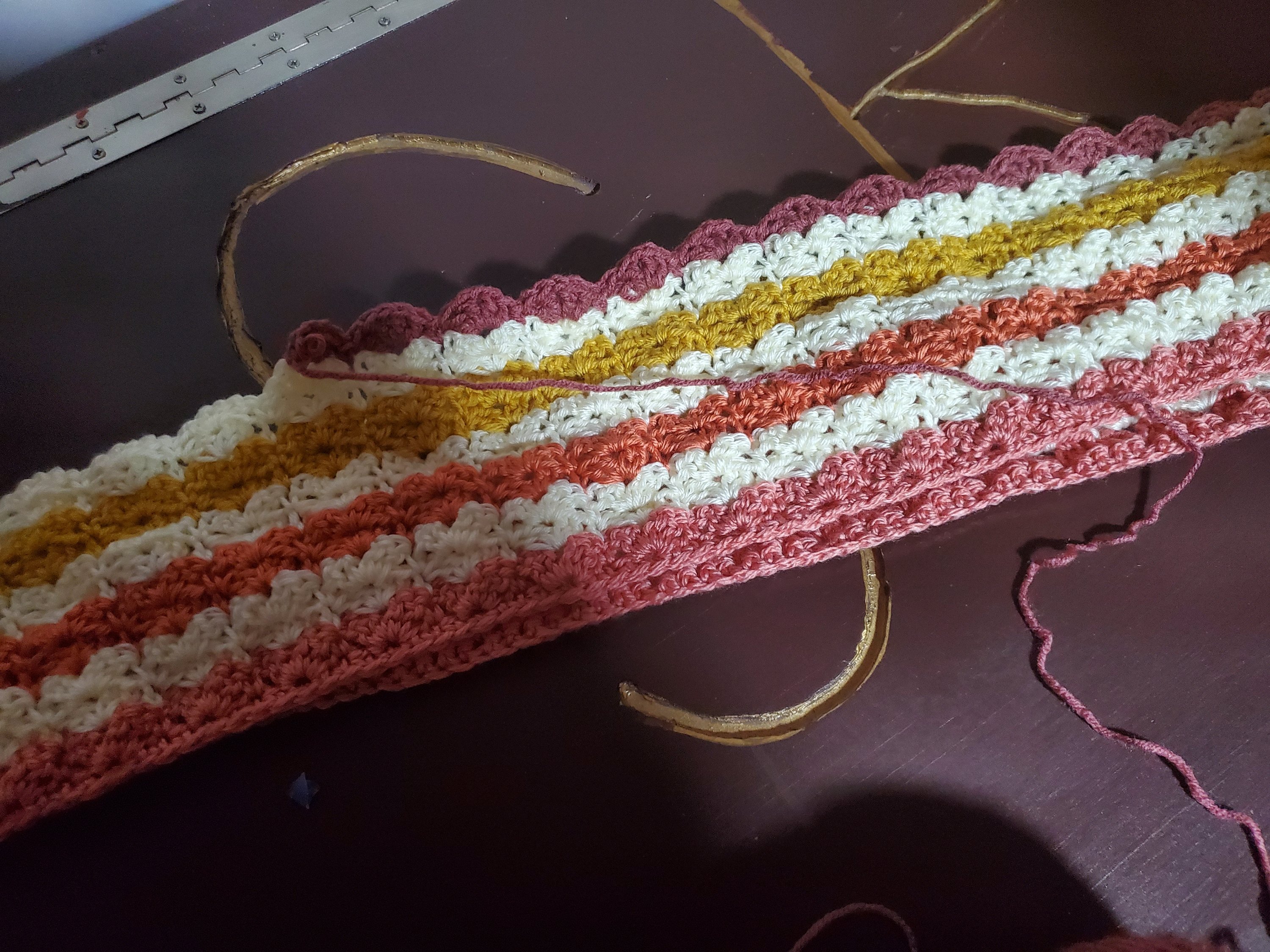 I also started working on a blanket for myself. I haven’t made a blanket in about 4 years. It was made for my child when he went to boarding school. This one is going to take a while since it’s for a queen sized bed. I using random acrylic skeins that’s already in my home. I have a huge stash because I was gifted yarn from someone who no longer crocheted.